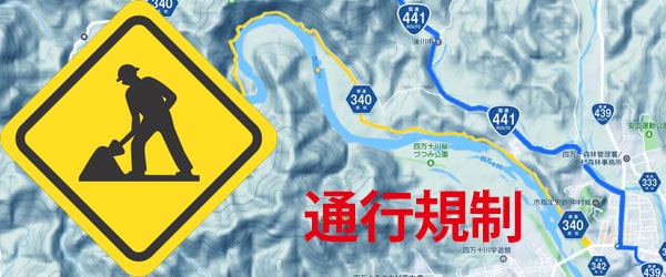 県道340号線(川登中村線)は、すれ違いができないほど道幅が非常に狭い箇所のある道路です。四万十の碧にお越しになる皆さまにはお勧めしておりません。